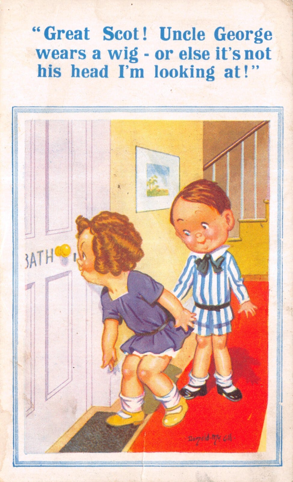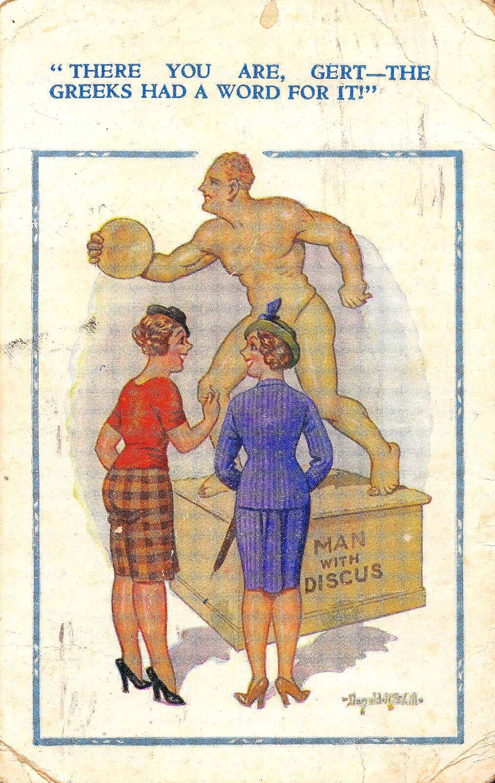 So, here it comes again more proper, & with joyful illustrations ,not by me this time for a change, as I have no interest in illustrating this topic- so I have added a handful of cheeky 1950’s British Postcards from seaside resorts instead.